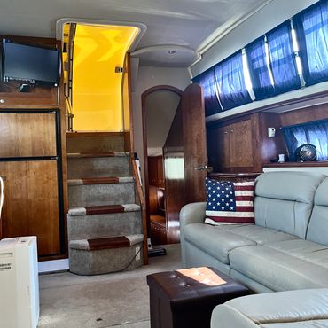 Diplomacy Yachting is proud to provide a 405 Cruisers Yachts Express Motor Yacht named Aim II as your private and personal yachting experience. Aim II can comfortably sleep four but has room for six. Amenities include TV's located in the salon, master suite, and guest suite. Starlink WIFI, galley with refrigerator, range, stove, and microwave, two heads with showers, two staterooms, heat and air conditioning throughout with a forward deck that can easily accommodate the whole crew.